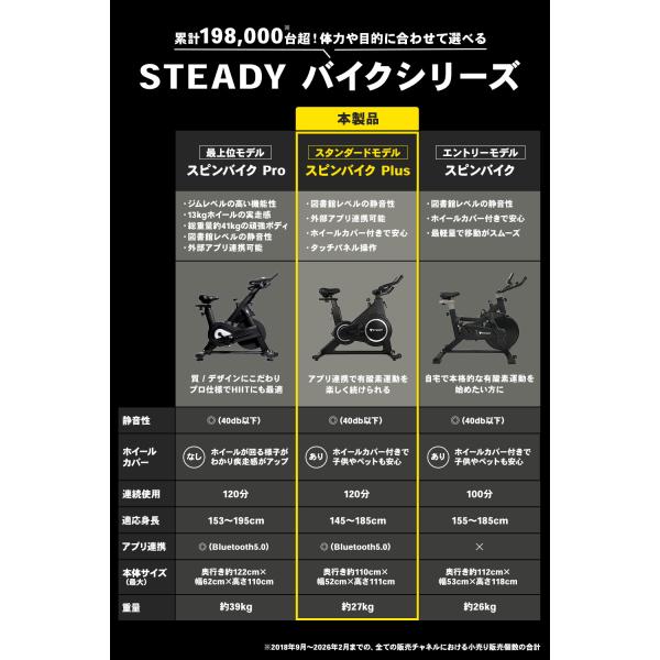 スピンバイク Plus 静音 家庭用 120分連続 モニター付き エアロバイク コンパクト 有酸素運動 365日保証 STEADY ST145