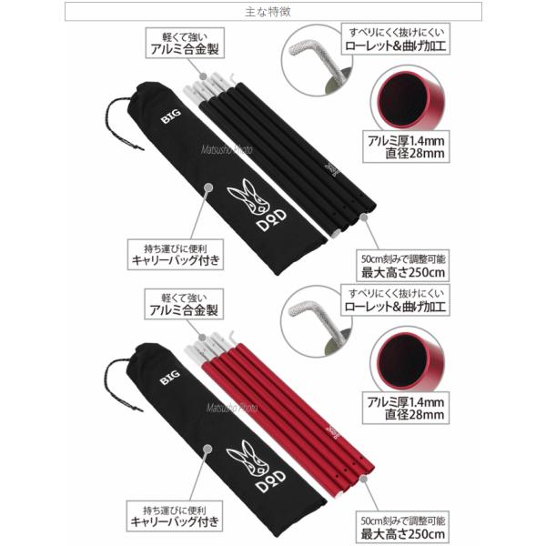 DOD タープポール タープ ポール 軽くて頑丈な250cmアルミ合金タープポール ビッグタープポール XP5-507 全3色 ブラック レッド シルバー ディーオーディー