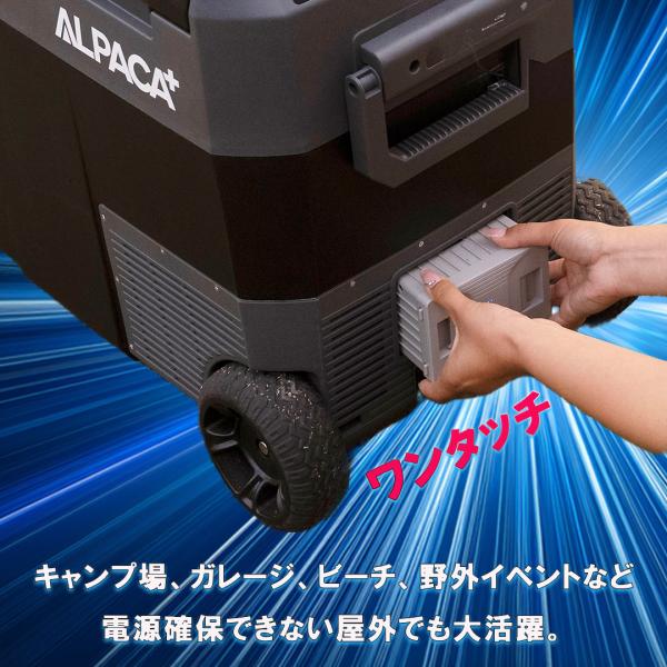 アルパカプラス 冷蔵冷凍庫用バッテリー 車載用冷蔵庫専用バッテリー ポータブル冷蔵庫 大容量 15600mAh 充電式 着脱式