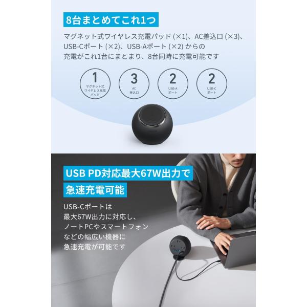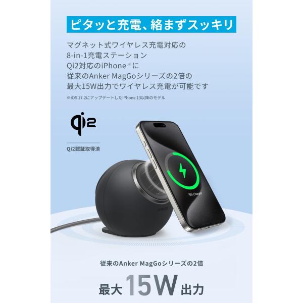 [在庫処分] アンカーAnker MagGo Magnetic Charging Station (8-in-1) ブラック 充電ステーション 置き 充電 マグネット かわいい おしゃれ 急速充電 A91C5N11||