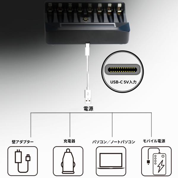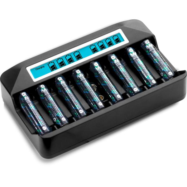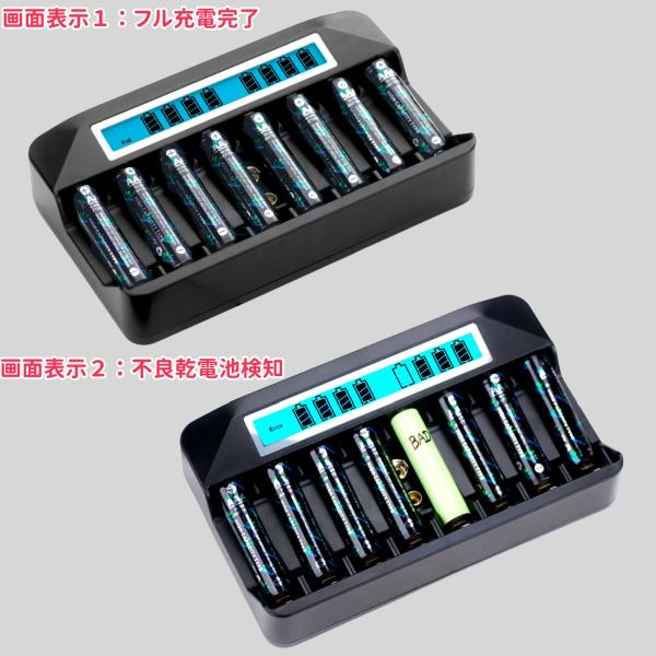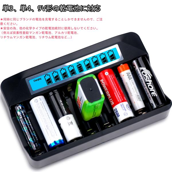 マルチチャージャー 乾電池充電器 電池充電器 ニッカド、ニッケル水素 リチウムイオン電池 単3、単4、9V充電池対応 LCD付きマルチ充電器 日本語説明書付