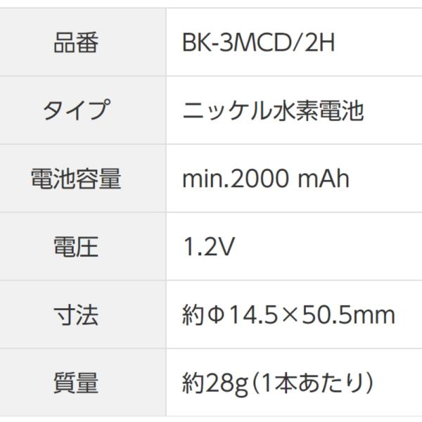 エネループ 単3形 2本パック Panasonic パナソニック eneloop 単三 二本 充電池 容量2000mAh スタンダードモデル BK-3MCD/2H ◆メ