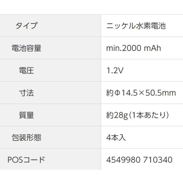 エネループ 単3形 4本パック Panasonic パナソニック eneloop 単三 四本 充電地 容量2000mAh スタンダードモデル BK-3MCD/4H ◆メ
