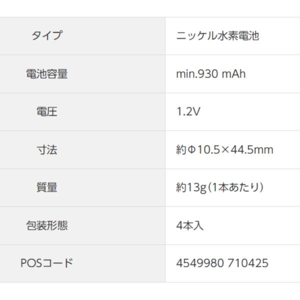 エネループプロ 単4形 4本パック Panasonic パナソニック eneloop pro 単四 四本 充電地 エネループPRO 容量930mAh ハイエンドモデル BK-4HCD/4H ◆メ