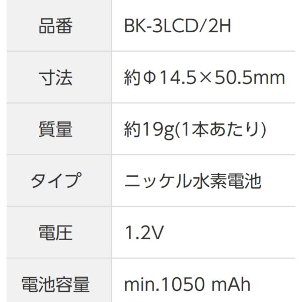 エネループライト 単3形 2本パック Panasonic パナソニック eneloop lite 単三 二本 充電池 容量1050mAh お手軽モデル BK-3LCD/2H ◆メ