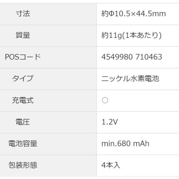 エネループライト 単4形 4本パック Panasonic パナソニック eneloop lite 単四 四本 充電地 容量680mAh お手軽モデル BK-4LCD/4H ◆メ