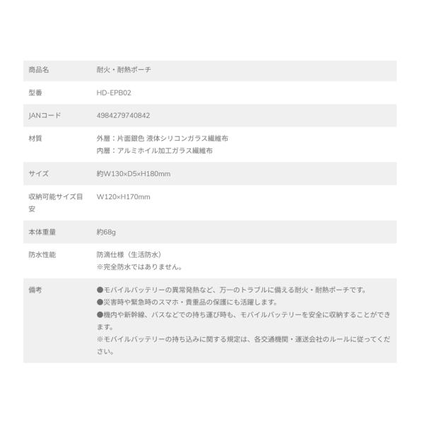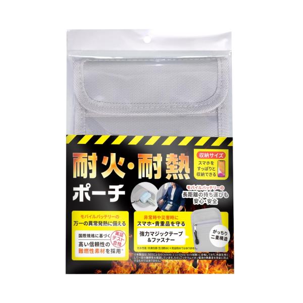 耐火 耐熱 ポーチ バッグ ケース 防火袋 スマホ モバイルバッテリー用 HIDISC 磁気研究所 発火 防火 防滴 安全対策 収納サイズ12×17cm グレー HD-EPB02 ◆メ