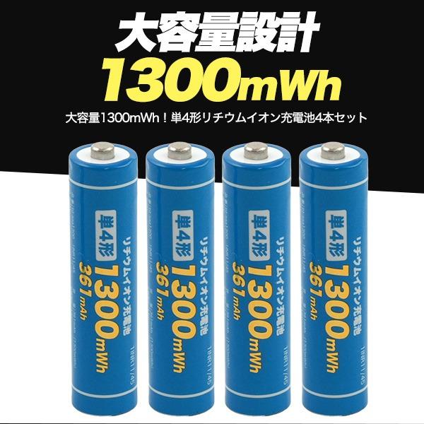 単4 充電池 単四電池 充電式 4本セット 1300mWh 1.5V リチウムイオン電池 780mAh PSE適合 保護回路搭載 旅行 防災