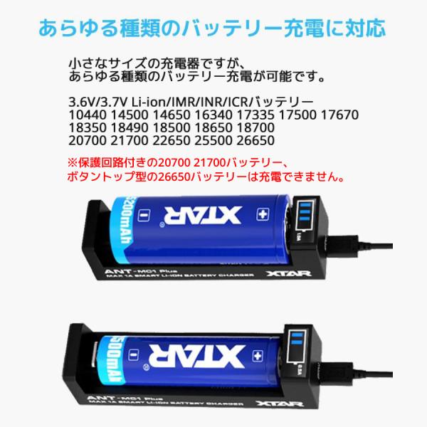 XTAR エクスター ANT MC1 Plus 14500 18650 対応 リチウムイオン 充電器 高速 急速 USB充電器 充電池 過放電解除