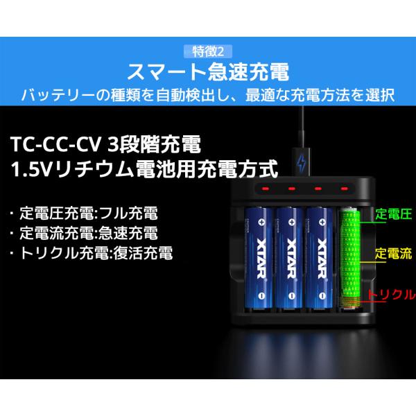 XTAR L4 単三 単四形 リチウムイオン充電器 混合充電 Type-C 単3 単4 ニッケル水素電池 1.5Vリチウム電池 Li-ion 1.5V・Ni-MH 1.2V 急速充電器