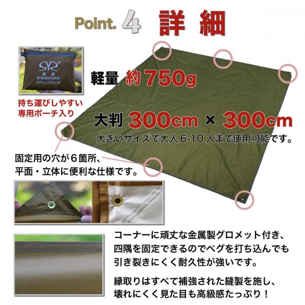 テントシート グランドシート300*300cm 耐水圧2000mm 両面防水 UV カット 軽量 大型 大判 おすすめ(ブラウン)