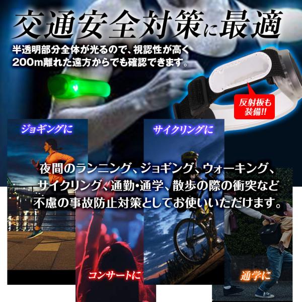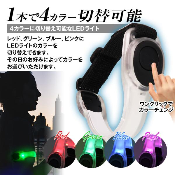 LED ライト アームバンド セーフティ ランニング 4色切替 自転車 バイク ペット 裾バンド ウォーキング サイクリング ゆうパケット3