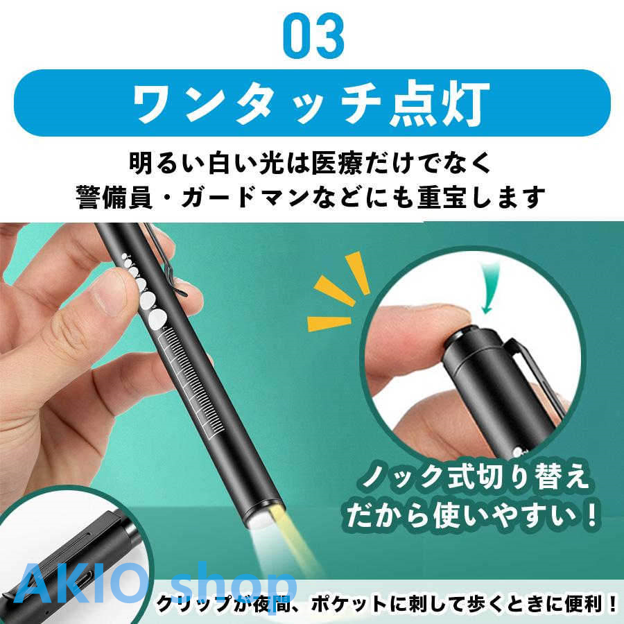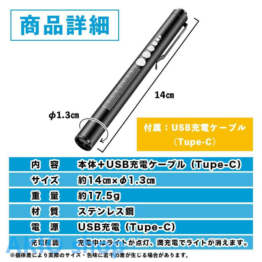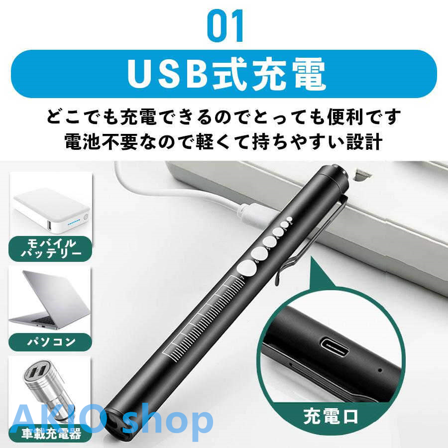 充電式ペンライト ledライト USB充電式 白色 暖色 瞳孔 懐中電灯 夜勤用 小型 看護師 介護
