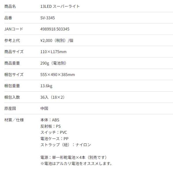 LEDライト LED懐中電灯 防災グッズ 災害用 LED 屋外 明るい 小型 強力 アウトドア キャンプ 登山 電池式 非常灯 夜釣り 散歩 13LEDスーパーライト SV3345