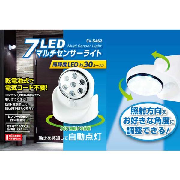 センサーライト 屋外 LED 人感センサーライト 室内 電池式 LEDセンサーライト ナイトライト 玄関 防水 防犯 廊下 階段 庭 自動点灯 防災グッズ 7LED SV-5462