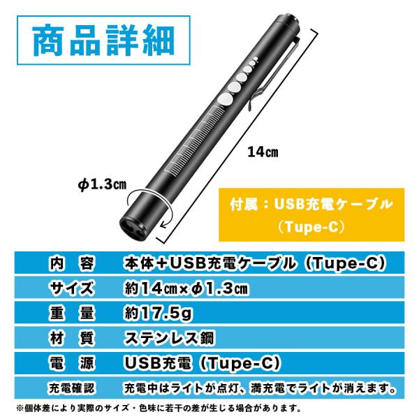 充電式ペンライト ledライト USB充電式 白色 暖色 瞳孔 懐中電灯 夜勤用 小型 看護師 介護 PSE認証済み