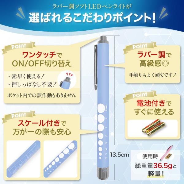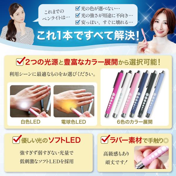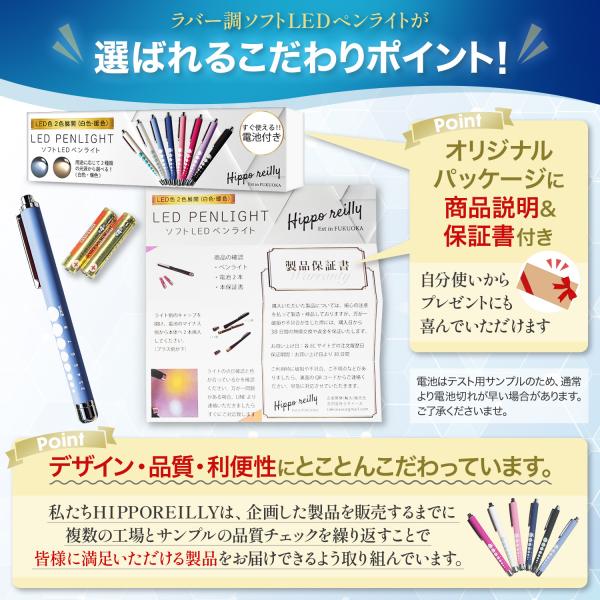 ペンライト 医療用 看護師 ソフトLED 光源(白色,電球色) ノック式 電池付 すぐ使える 手触りのいいラバー素材 頑丈ですべりにくい 【HIPPO REILLY】