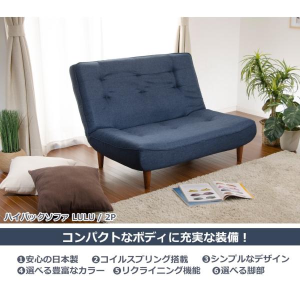 ソファー 2人掛け おしゃれ ハイバック リクライニング シンプル コンパクト 北欧 ポケットコイル ソファ A40