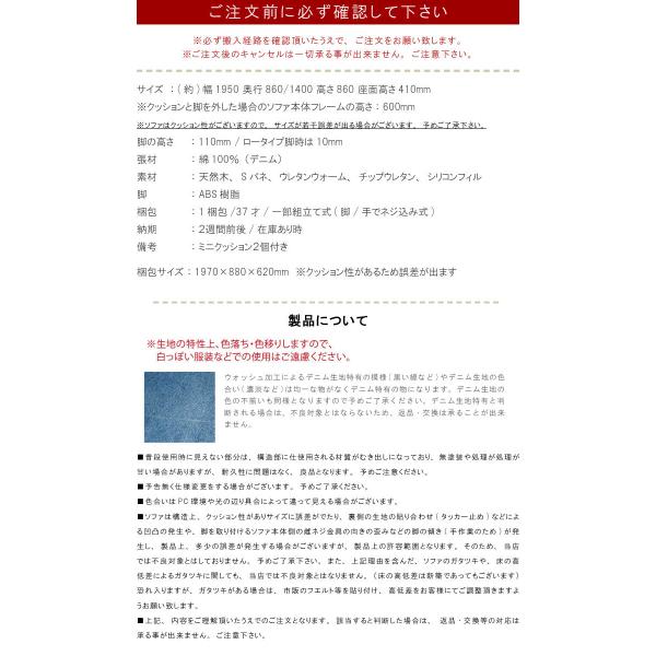 カウチソファ デニム スツール クッション付き 3人掛けソファ 幅195cm デニム コーデュロイ オットマン 北欧デザイン 三人掛け SOK 開梱設置送料無料 爆買