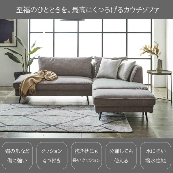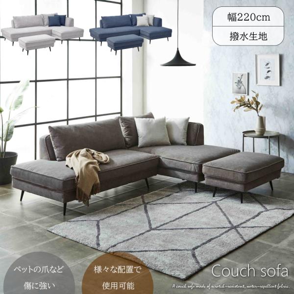 ソファー ソファ カウチソファ ワイドソファ 3人掛け 3人用 撥水 ペット生地 傷に強い 汚れに強い おしゃれ オットマン付き L字 l字 分割使用可能 配置自由