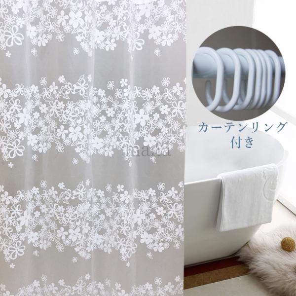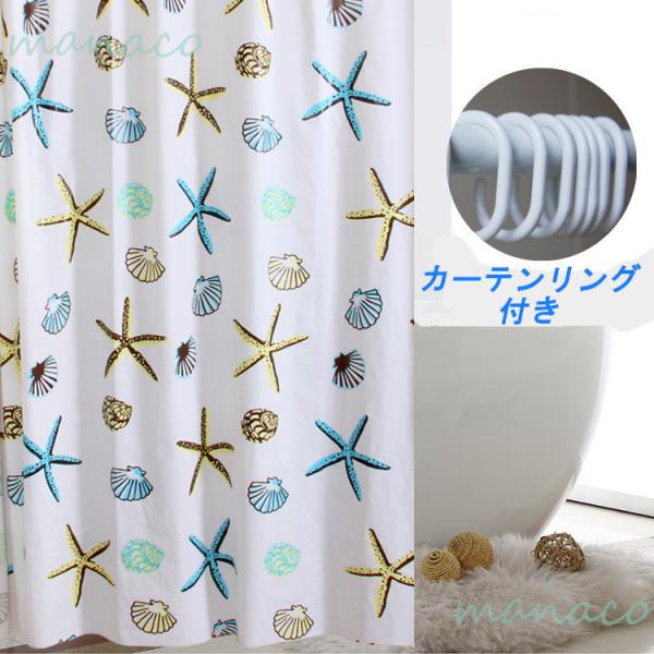 シャワーカーテン 海 防水防カビ加工 100×180 リング付属 浴室カーテン バスルーム バスタブ お風呂場 目隠し 仕切り