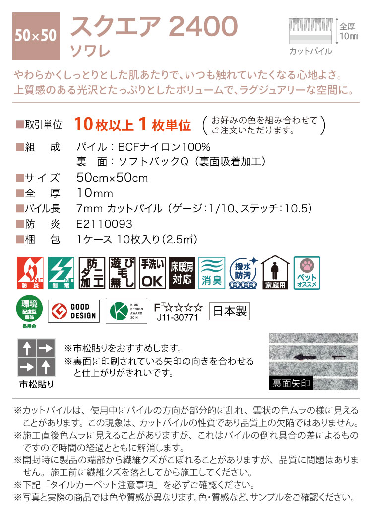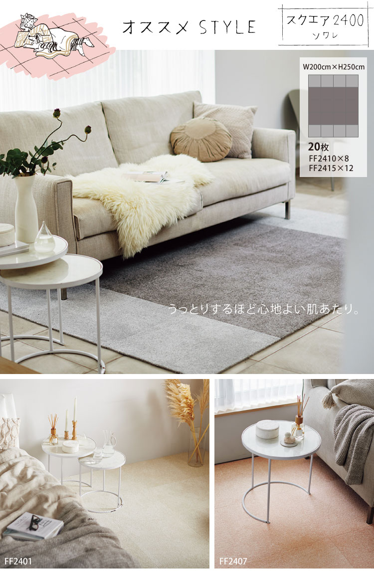 【新レビュー特典】東リ タイルカーペット FF2400 ファブリックフロア ソワレ 50×50 FF2401 FF2402 FF2404 FF2405 FF2407 FF2409 FF2410