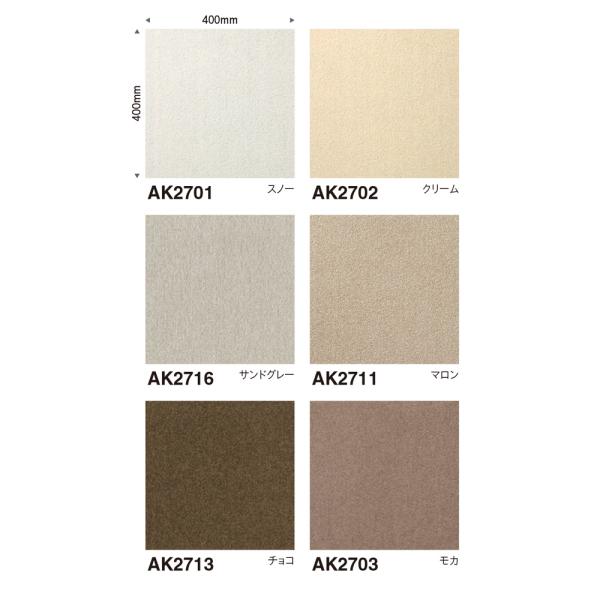(カットサンプル) 住宅用タイルカーペット 裏面吸着 キャンパスファイン アタック270 選べる14カラー 東リ AK2701〜AK2717(約20cmx10cm)