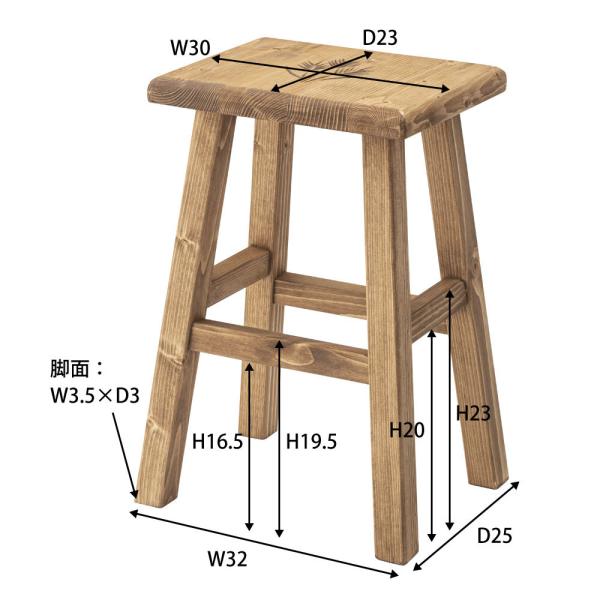 スツール角 幅30cm 奥行23cm 高さ46cm ダイニング パイン材 オイル仕上 コンパクト 角椅子 おしゃれ カントリー アンティーク調 CFS-516 東谷