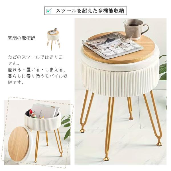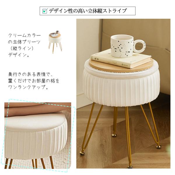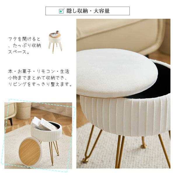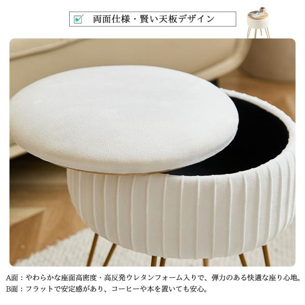スツール 収納スツール 脚付きスツール オットマン 丸型 高反発 四脚設計 ベルベット調 プリーツ 天板リバーシブル 隠し収納 おしゃれ かわいい