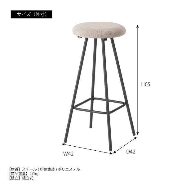 ハイスツール PC-18 スツール 椅子 イス いす おしゃれ コーデュロイ スチール 軽量 軽い 丸型 円形 カウンタースツール ラウンド チェア モダン コーデュロイ