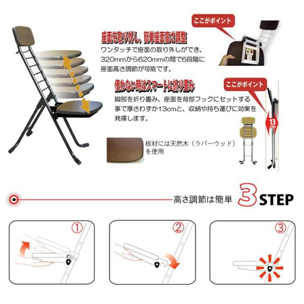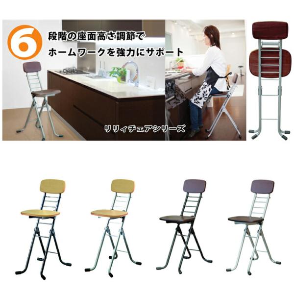 日本製 座面高さ6段階で調節可能 キッチンチェアに CSM-320 リリィチェアM ( ルネセイコウ おしゃれ 台所 パイプ いす 座面高 調節