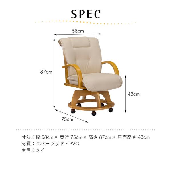 回転 ダイニングチェア 座面回転式 回転チェア 1脚入り 肘付き ひじ掛け付き キャスター付き 木製 PVC 合皮 おしゃれ