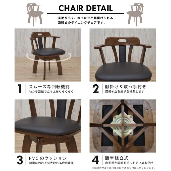 回転式 ダイニングチェア 2脚セット肘掛け 取っ手付き sild-ch-360-wal クッション 回転椅子 シンプル レトロ ストッパー無し 7s-1k-173 yk