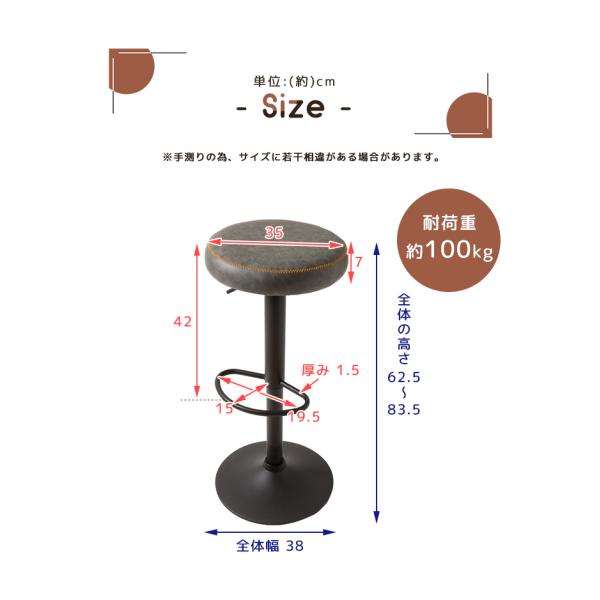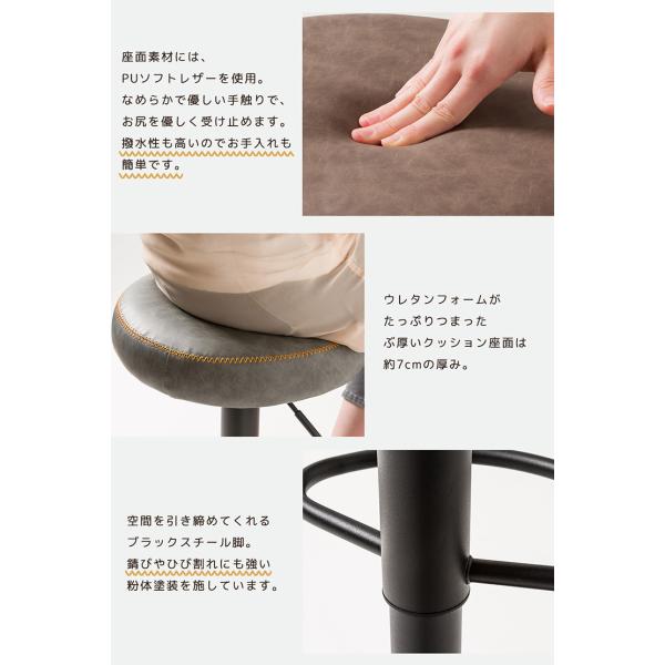 カウンターチェア バーチェア 昇降 360度回転 背なしチェア スツール キッチン おしゃれ PUレザー カフェ風 デザイン 椅子 いす 業務用