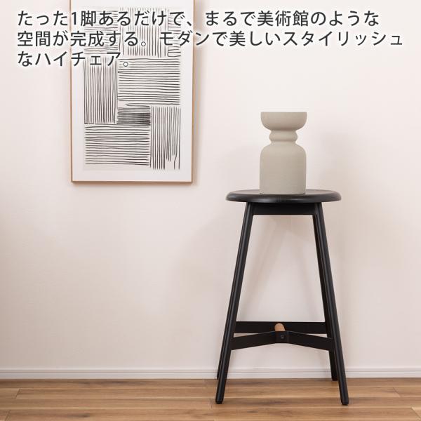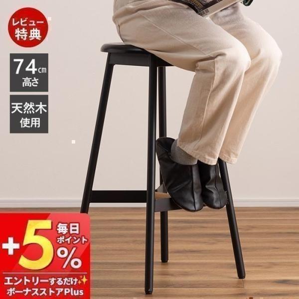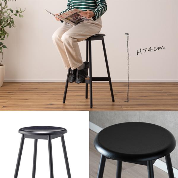 ハイスツール カウンターチェア 椅子 天然木 スチール まる 円 座 形 背もたれなし 来客用 モダン シンプル おしゃれ ブラック 黒 PC-972BK