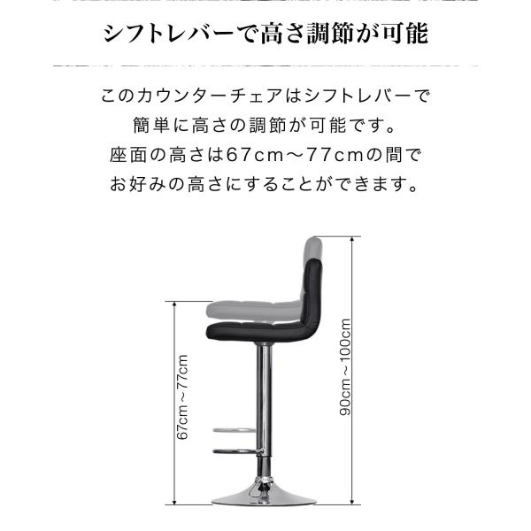 カウンターチェアー 昇降式 高さ調整 座面高67-77cm 耐荷重100kg 1脚 背もたれ付き ダイニングチェアー バー キッチン おしゃれ PUレザー 革 1年保証 送料無料