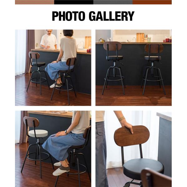 カウンターチェア 椅子 バースツール 2脚セット 昇降式 バーチェア 背もたれ 高さ調節 キッチン チェア 昇降 いす カウンターチェアー 1年保証 送料無料