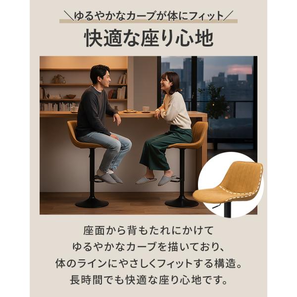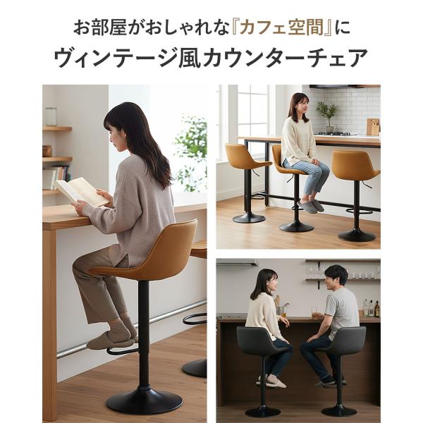 カウンターチェア バーチェア 背もたれ付き 回転 ガス圧昇降 2脚セット 高さ調整 座面高62〜83cm PUレザー/ヴィンテージ加工 1年保証 送料無料