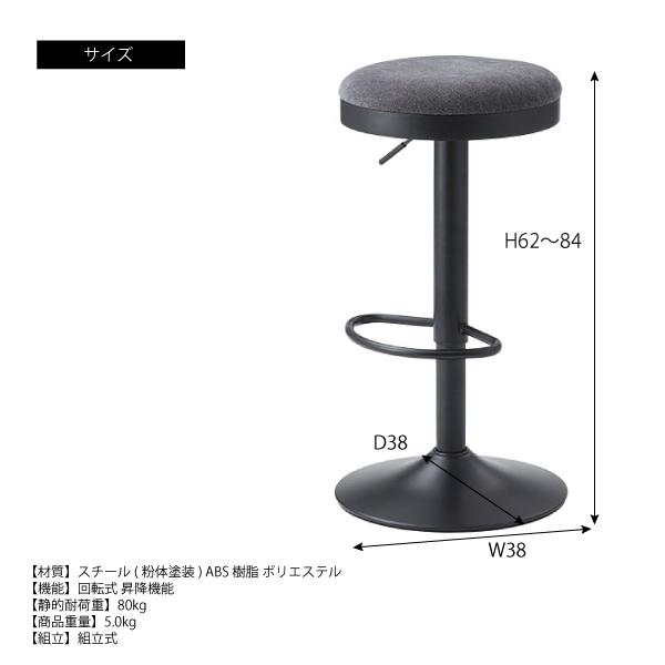☆ カウンタースツール PC-264 昇降機能 回転式 丸椅子 丸チェア スツール チェア モダン インダストリアル シンプルおしゃれ 黒 ブラック ファブリック