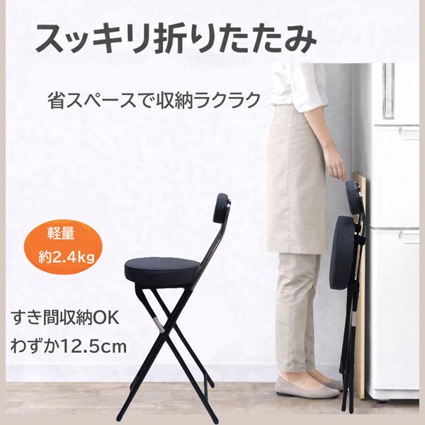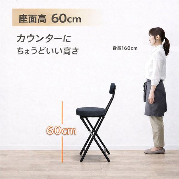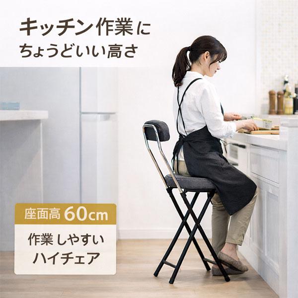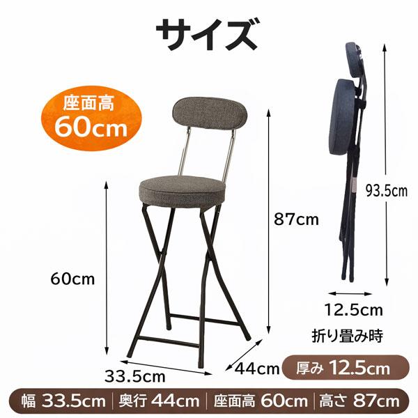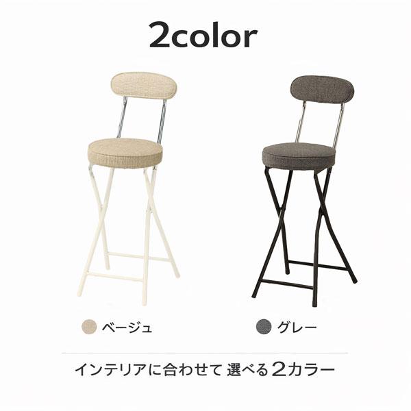 折りたたみ椅子 カウンターチェア 背もたれ付き ハイチェア 高さ60cm クッション 軽量 コンパクト収納 キッチンチェア ツイード調 布張り ベージュ グレー