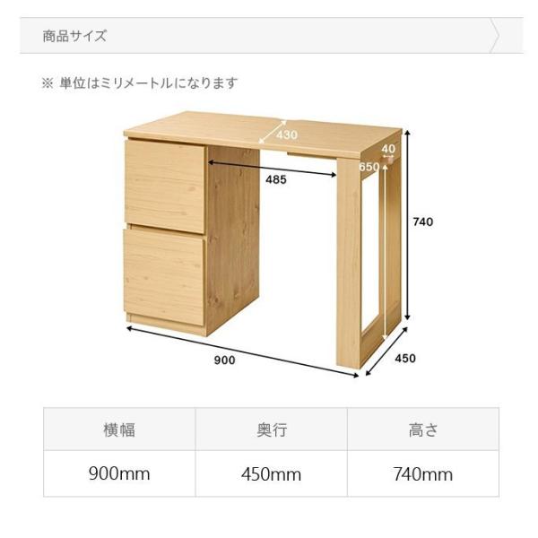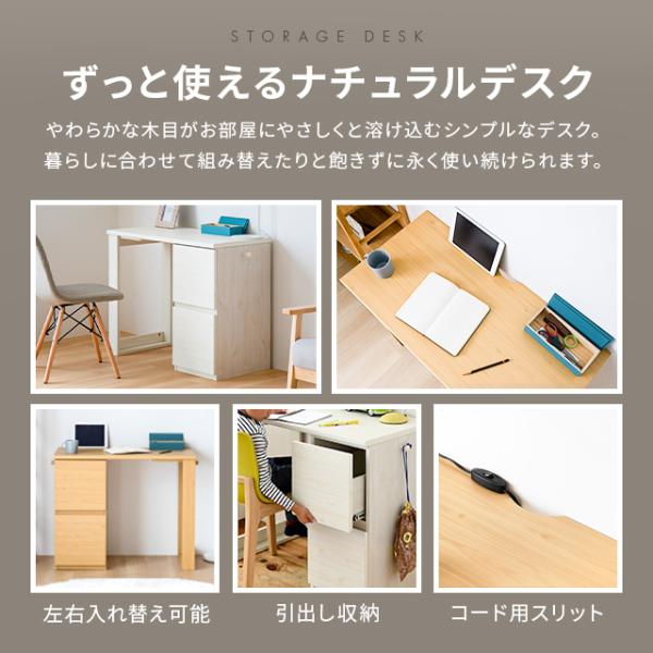 デスク ユニットデスク 収納 木製 木目調 ウッド ナチュラル 白 ホワイト 幅90cm 奥行45cm 机 ワークデスク 学習机 つくえ PC 引き出し