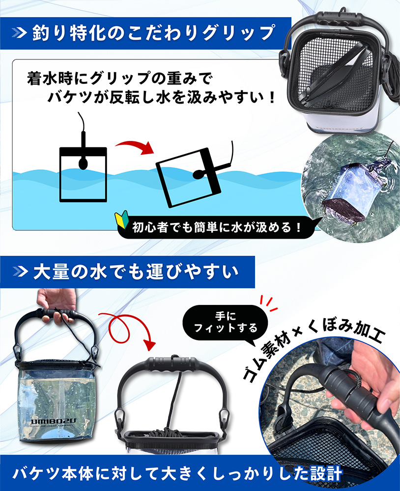 釣りバケツ 四角型【クリアブラック 21cm】