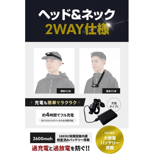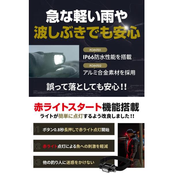 ヘッドライト 充電式 釣り 軽量 防水 LED ヘットライト シーボンズ SPEC2 ミドルモデル 2600mAhバッテリー 爆買