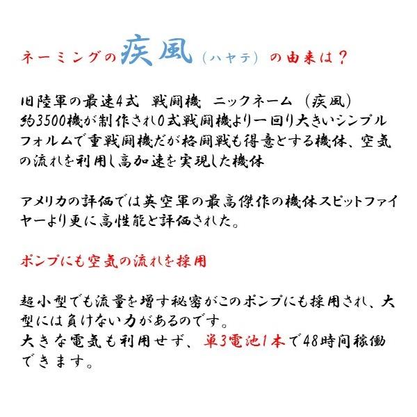 エアーポンプ 釣り 単3電池x1本 使用 世界最小 疾風48式 ハヤテ