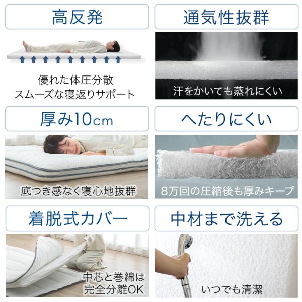敷布団 ダブル 140×200 洗える 敷ふとん 敷き布団 硬め 極厚 マットレス不要 高反発 ダブルロング ウォッシャブル ふとん