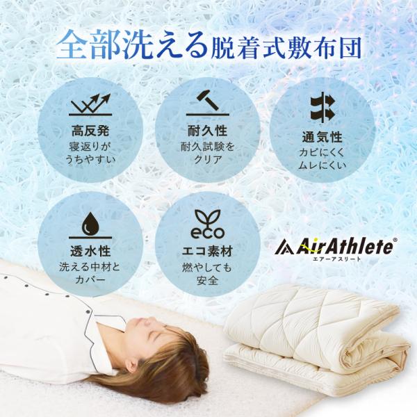 敷布団 シングルロング シングル 日本製 エアーアスリート 全部洗える 脱着式布団 ポリエステル 100% 防臭 折り畳み可能 速乾 クッション 透水