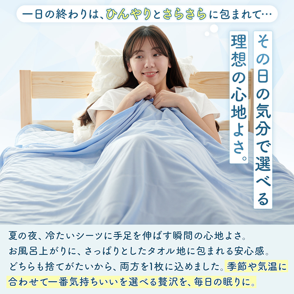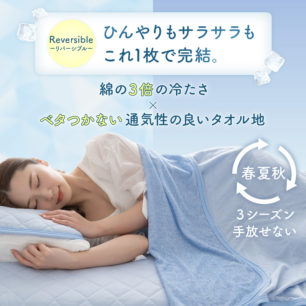 タオルケット シングル 冷感 薄手 クールケット 夏用 お昼寝 軽い リバーシブル 2枚合わせ 接触冷感 涼感 タオル地 吸水速乾 140×190cm