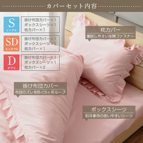布団カバー フリル カバー3点セット 4点セット シングル セミダブル ダブル 敷き布団 ベッド 兼用 選べる7カラー おしゃれ ゴージャス