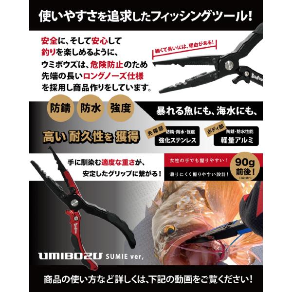フィッシングプライヤー 墨絵モデル UMIBOZU ウミボウズ フィッシュプライヤー 釣り用ペンチ 軽量 針はずし ラインカッター