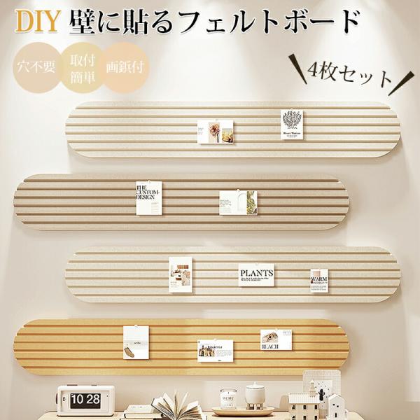 フェルトボード おしゃれ 壁掛け 貼る 大 穴不要 写真 取付簡単 画鋲付 4枚入り フォトフレーム ポストカード フェルト 壁掛けボード 傷つけない おしゃれ